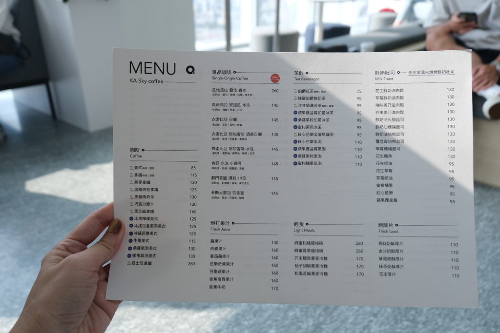 這家咖啡廳到處坐滿了人,以極簡白為主調,提供咖啡、單品咖啡、現打果汁、輕食、茶飲、鮮奶吐司、烤厚片;選擇相當豐富。