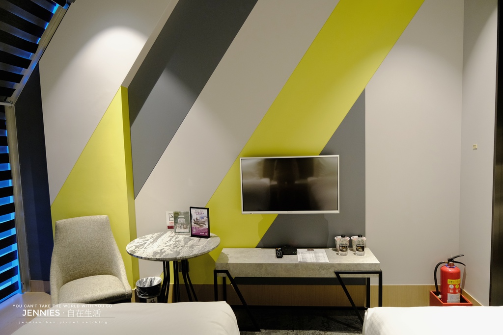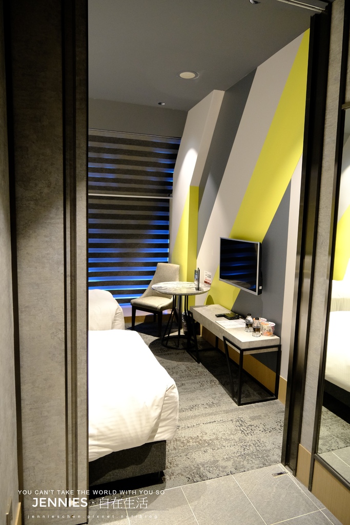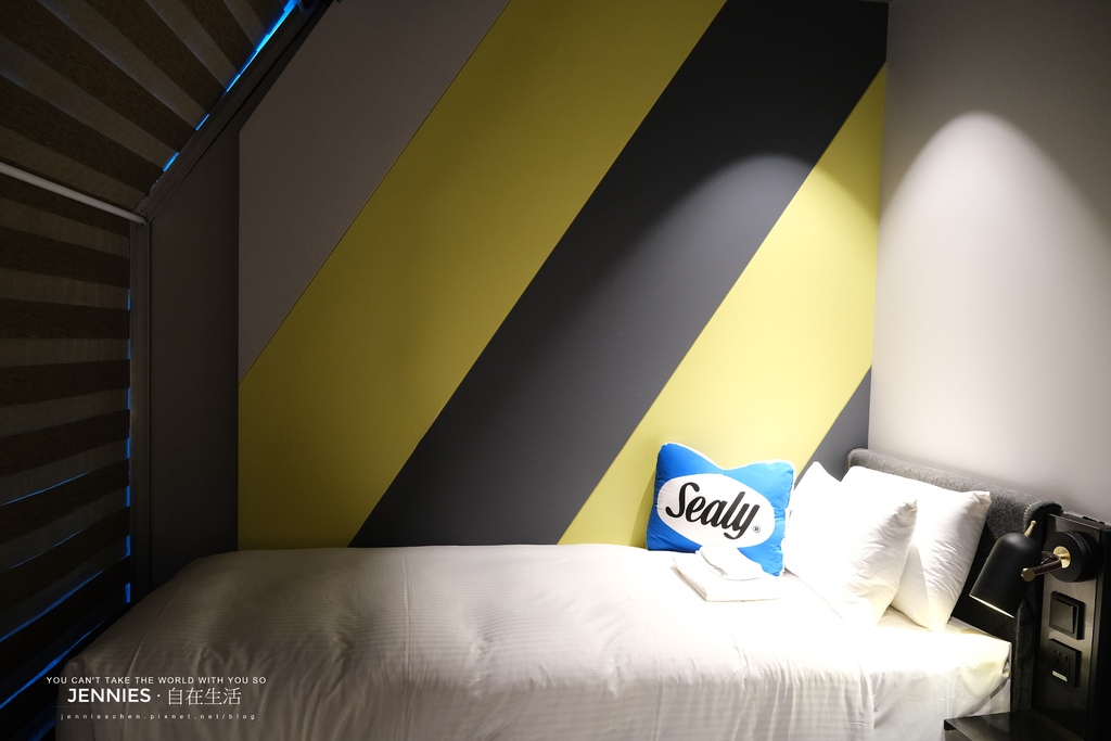 房間設計以黃灰色的活潑調性為主,帶有沉穩的空間氛圍-