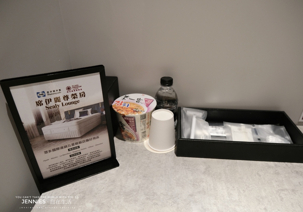 單人房內配置了一張Sealy飯店等級床墊,搭配柔軟的枕頭與乾淨床組,對於剛下飛機或是轉機等待的人而言,是一種身體能真正能放鬆的踏實感。房內備有小書桌、桌燈與簡易備品,若你只是想補眠、整理情緒或補上未完成的工作,空間雖小卻相當足夠。