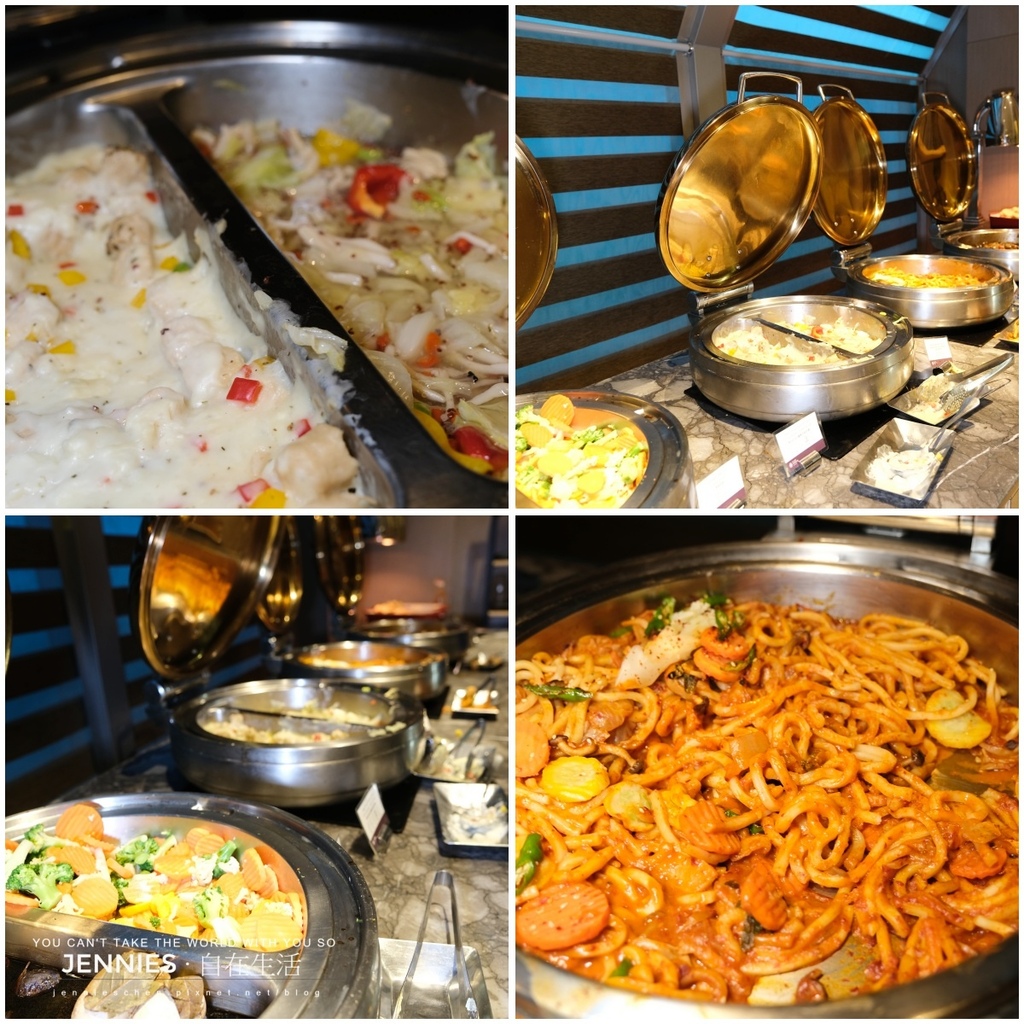 餐食選擇十分多樣,包含熱食、現點現做的麵食、沙拉、特色甜點、瓶裝飲料、咖啡與酒精飲品等。我自己特別喜歡他們的牛肉麵、炒麵、地瓜球以及麵包;麵包是生吐司等級,鬆軟香甜,還能搭配多種不同果醬。Made-to-order noodles, hot dishes, salad, desserts, coffee & alcoholic drinks.