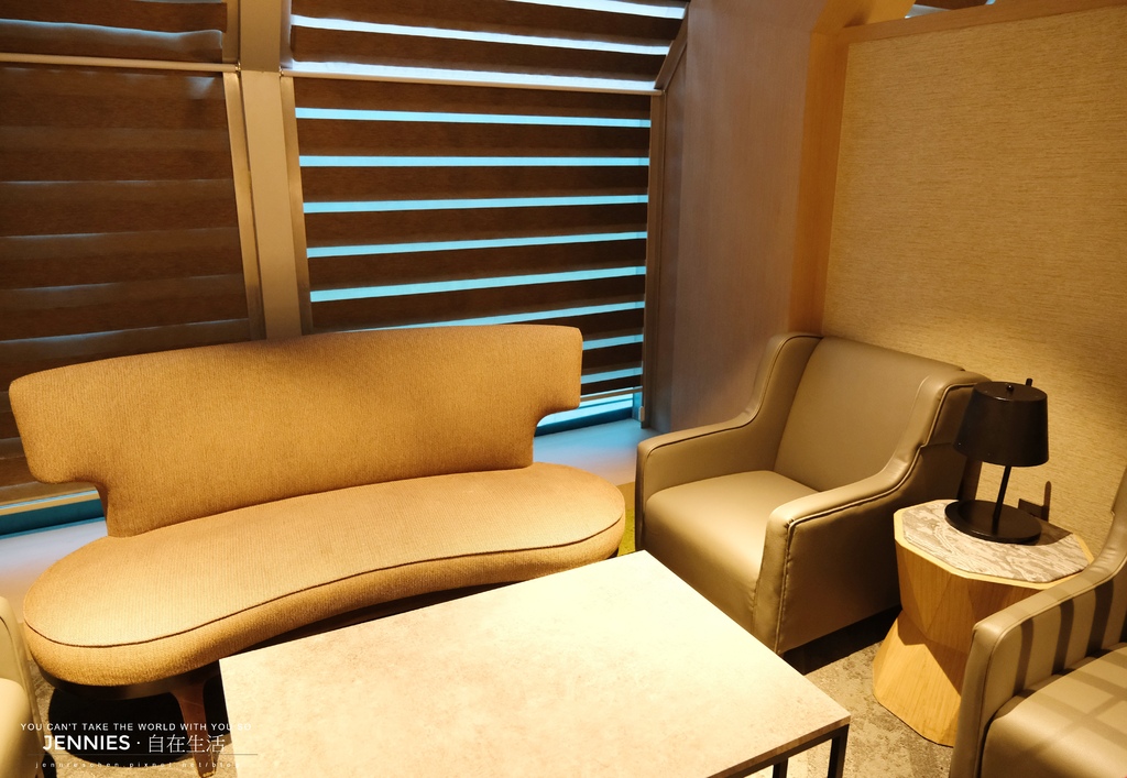 隱身在桃園機場第二航廈4樓的管制區內,佔地超過11,000平方英尺、約200個座位,從設計到服務都有著更完整的動線與節奏。天然石材、木質線條與柔和光影交織的空間氛圍,讓人一走進來就能感到輕鬆自在!