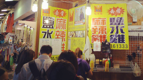 這次特地來吃夜市,所以有上網查了一下。可是到了夜市跟著人群排隊,不知道這家到底好不好吃。不過排隊的人真的不少,這家去骨鹹水雞是在巷子裡(本來我在網路上找的是雞房重地)。