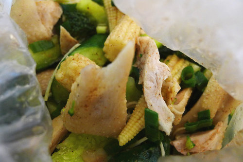我點了雞胸、小黃瓜、花椰菜、玉米筍共100元。