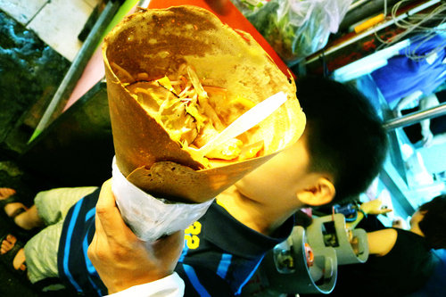 對了!許記生煎包我也覺得很好吃,早知道今個應該去買的。另外推薦的美食還有牛魔王及燈籠滷味。上次在師大夜市還吃到一家超好吃的蛋餅→蛋幾ㄌㄟ,自從吃過後就對它念念不忘!現點現煎,外皮酥脆,內餡滿滿的蔬菜加上特製的餅皮與醬油,好想再去吃一次啊!!