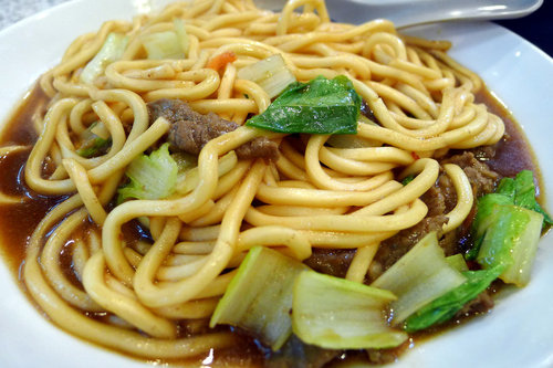 因為也沒吃幾樣又怕小朋友餓著,於是點了這盤牛肉炒麵, 麵條好硬喔!!不喜歡>"<